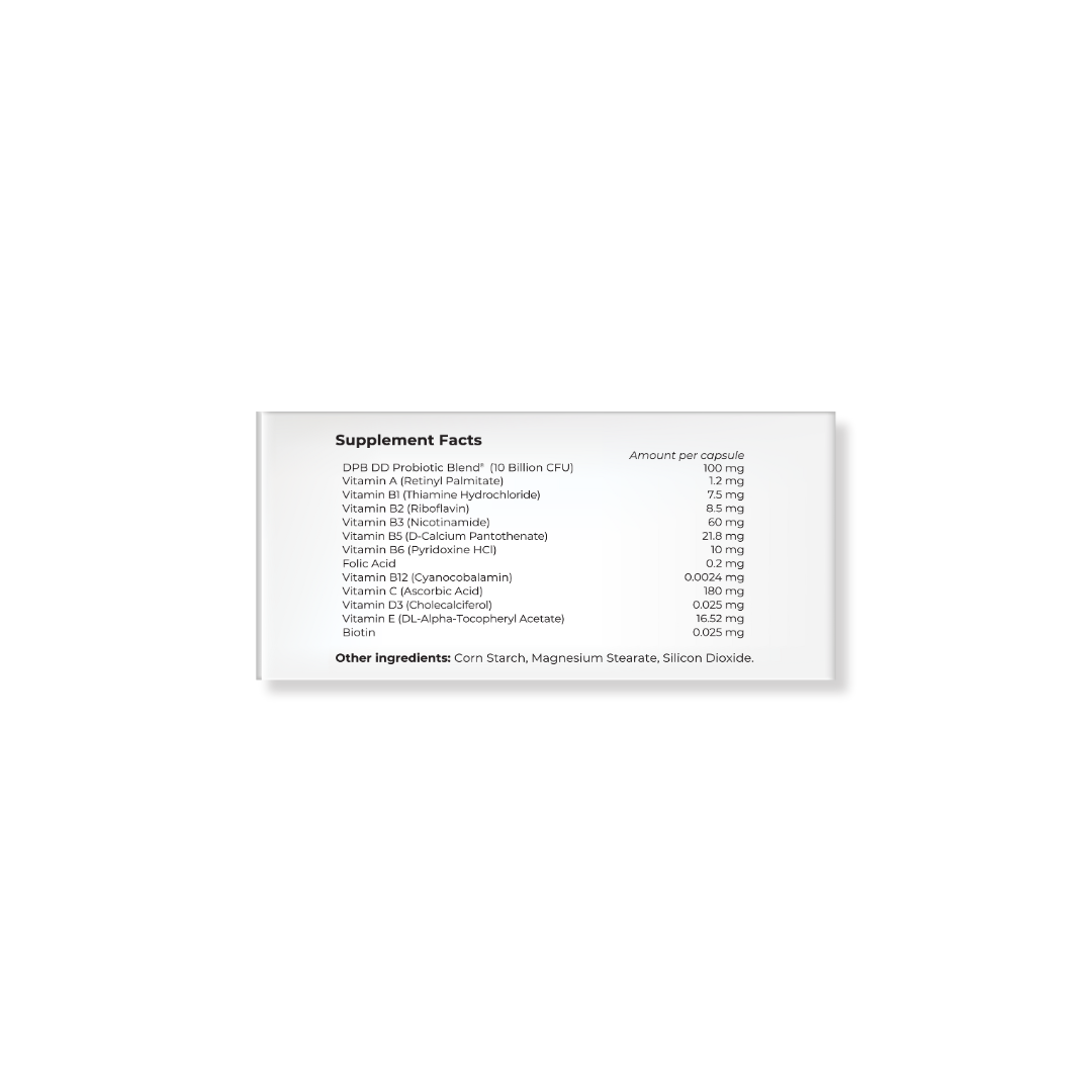The smarter combination of probiotics and multivitamins for gut health + skin health + immunity support.