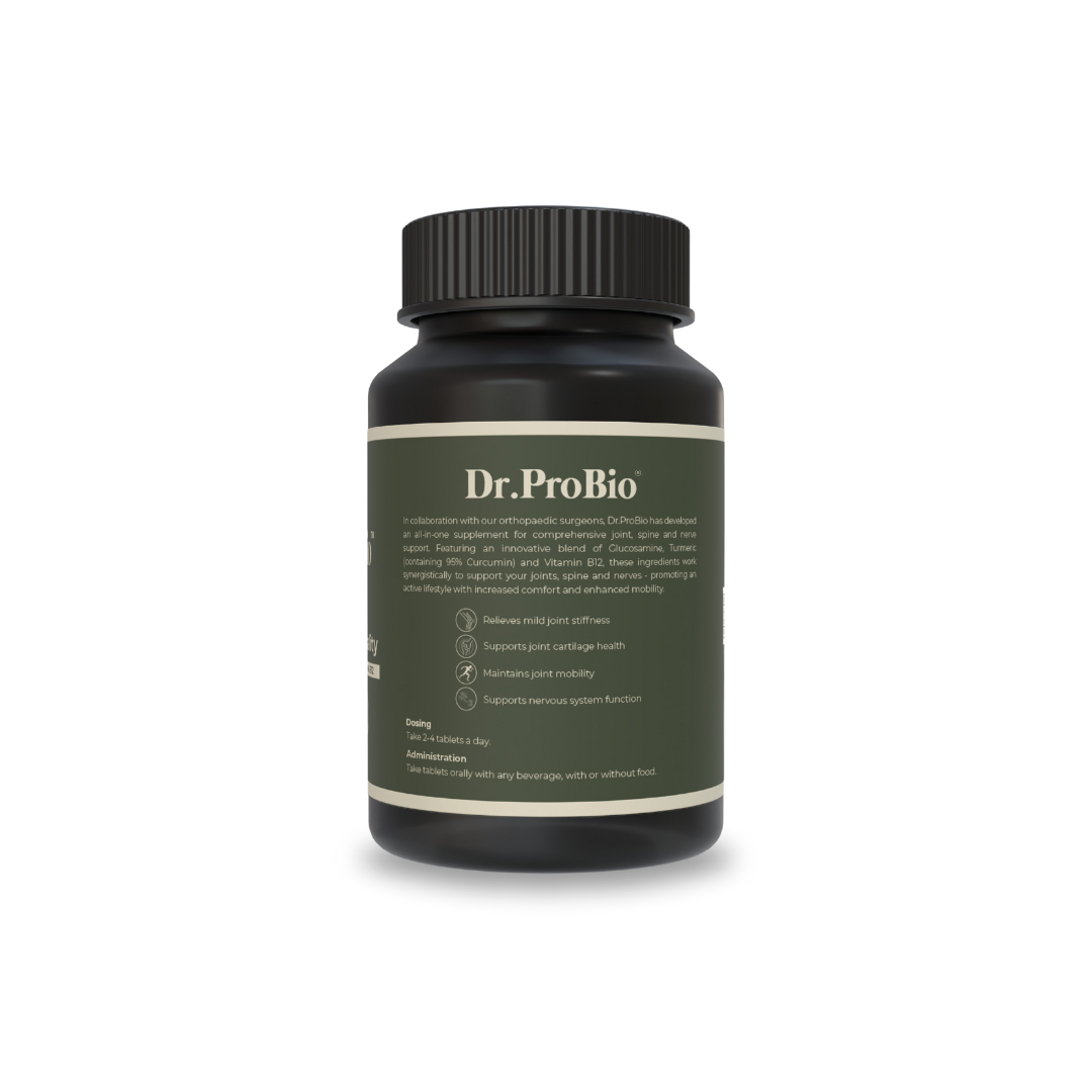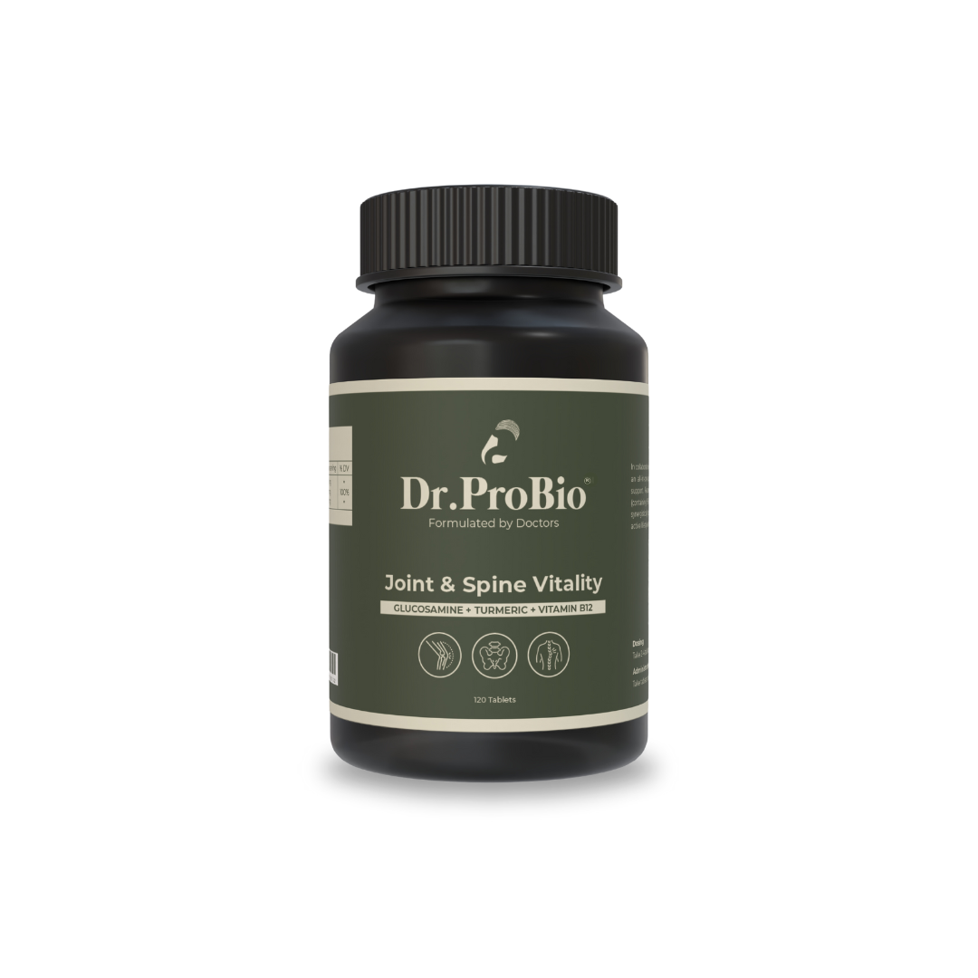 An all-in-one supplement featuring an innovative blend of Curcumin, Glucosamine & Vitamin B12, Dr.ProBio's Joint & Spine Vitality provides comprehensive joint, spine and nerve support.