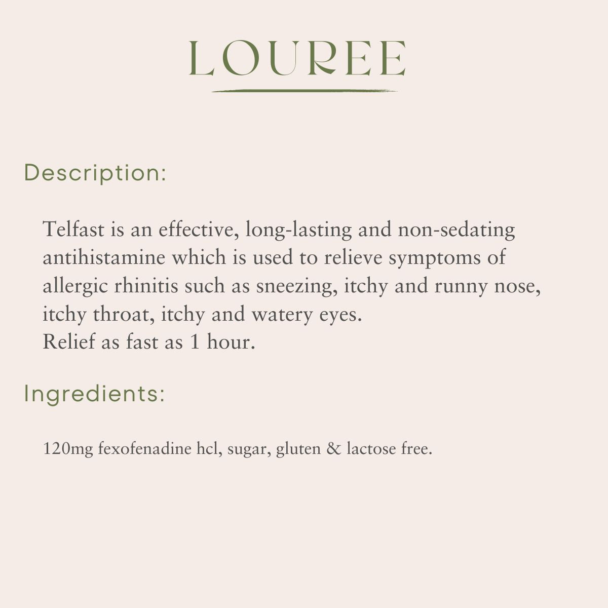 Telfast is an effective, long-lasting and non-sedating antihistamine which is used to relieve symptoms of allergic rhinitis such as sneezing, itchy and runny nose, itchy throat, itchy and watery eyes.