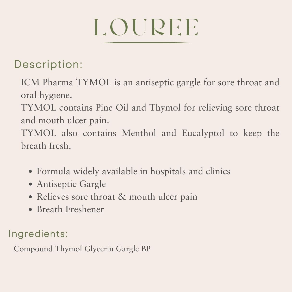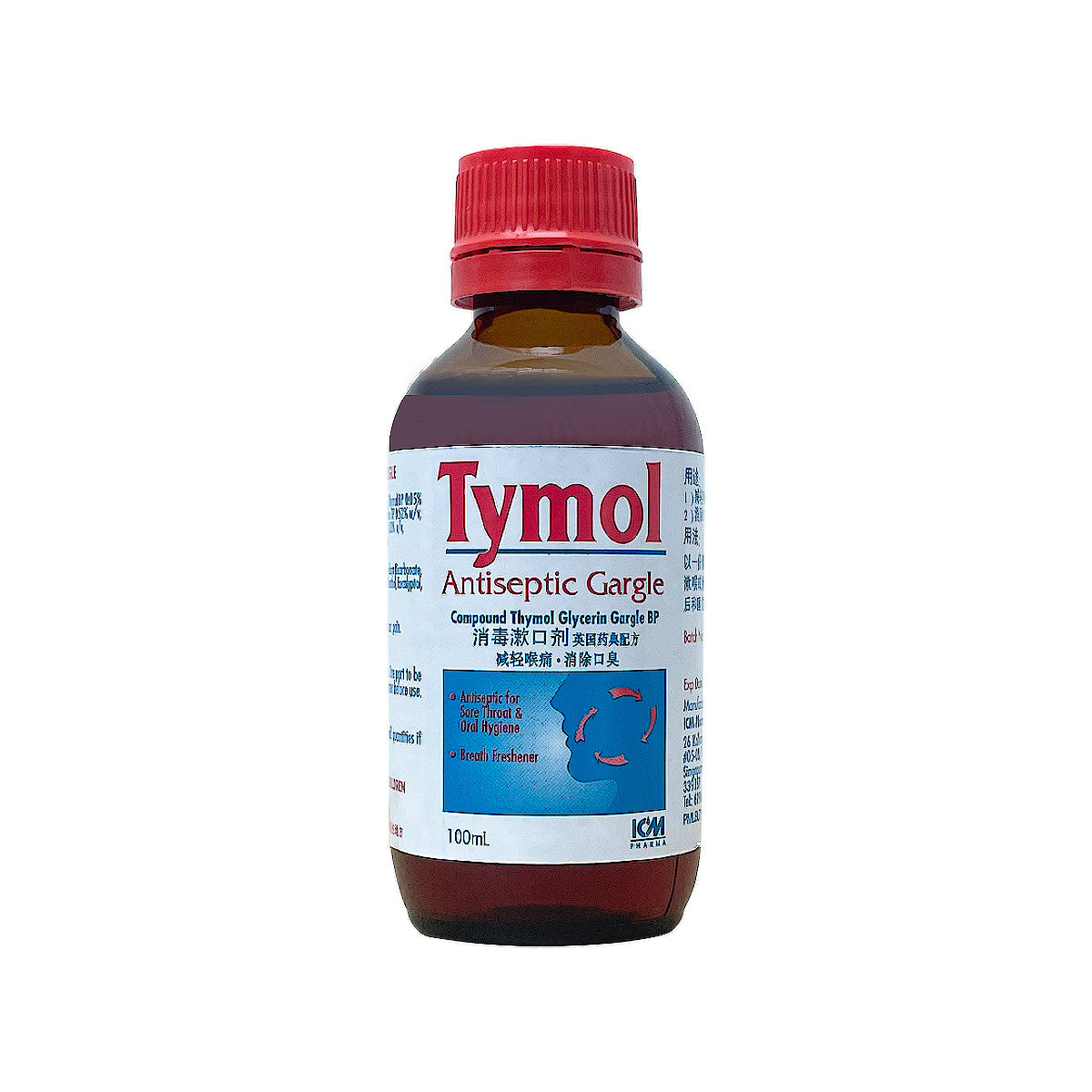 ICM Pharma TYMOL is an antiseptic gargle for sore throat and oral hygiene.